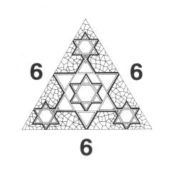 The 6-sided star (Solomon's seal; the star of David) can be formed by using 6 single lines. It can be formed by using 6 double-crossed lines (X's). It can be formed by using 6 triple-joined lines (triangles). Single, double, triple --- we've seen this 1,2,3 before.